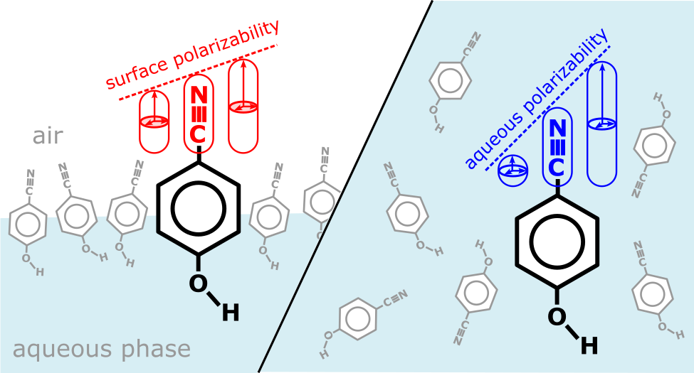 The talk described an approach that combines SFG with Raman depolarization ratio measurements to extract meaningful electronic structure information at interfaces. Using p-cyanophenol at the air-water interface as a model system, the team applied different laser polarization schemes (SPS, SSP, PPP) and mathematical models to separate the effects of orientation from the underlying molecular environment.